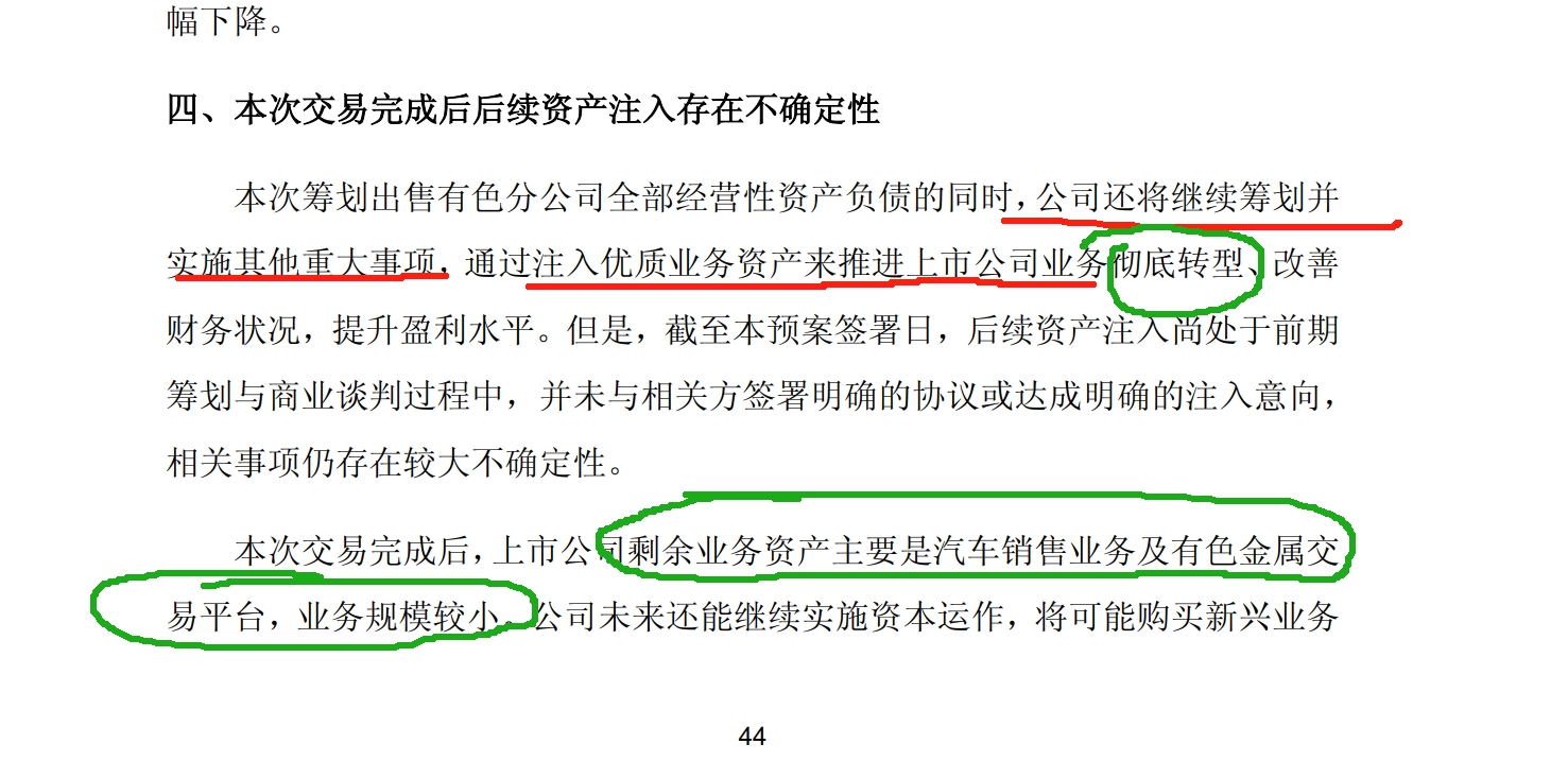 从24年并购七条和上海发布的支持上市公司重组并购开始,市场500多只股票停牌,要么变更控制权,要么增发股份购买资产,国企的也不少。从上海的行动方案看,对于传统行业的上市公司支持力度很大,特别是物流、服务等行业,不仅支持其发展第二增长曲线,也支持并购资产提升竞争力,最猛的还是支持公司亏损的资产无责置出!!对于上市公公司的控股集团来说,是一次很好的剥离亏损资产的机会,因为上海物贸的核心业务百联汽车,他的营收无论增加多少,利润都是不痛不痒,增收布增利,而且稍微扩大销售,财务费用就陡然上升,说白了,这是行业的问题,不然庞大汽车和广汇汽车也不会退市。鉴于16年百联集团就有一次转让控制权的想法,现在做芯片和AI的公司那么多,而且机器人公司收购上市公司控股权的也很多,天普、上纬以及最近的嘉美包装,不奢求上海电气找百联集团购买上海物贸的股权然后把上海微电子注入,是否存在让AI算力机器人等公司通过收购等方式注入上市公司呢?最不济股权转让嘛,而且现在商业航天这么紧迫,对于《上海市关于加快培育商业航天先进制造业集群的若干措施》,让有潜力的商业航天设备公司来共同发展又何尝不好?所以我说注入上海证券在目前环境来说不是个什么好的选择。