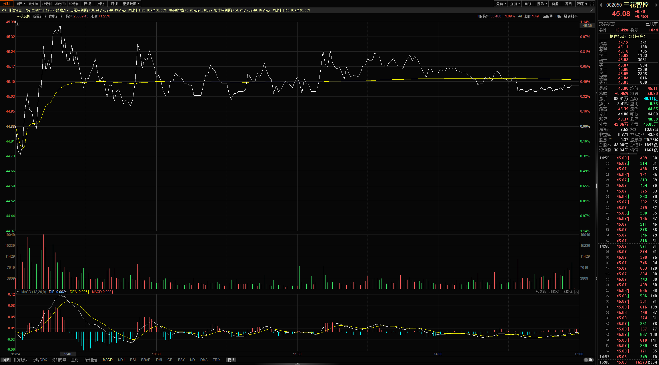 三花智控(机器人、华为汽车):早盘平开,随后小幅上拉,接着就是全天震荡,波动区间很小,平平淡淡的走势,也算是守住了位置,继续格局吧。