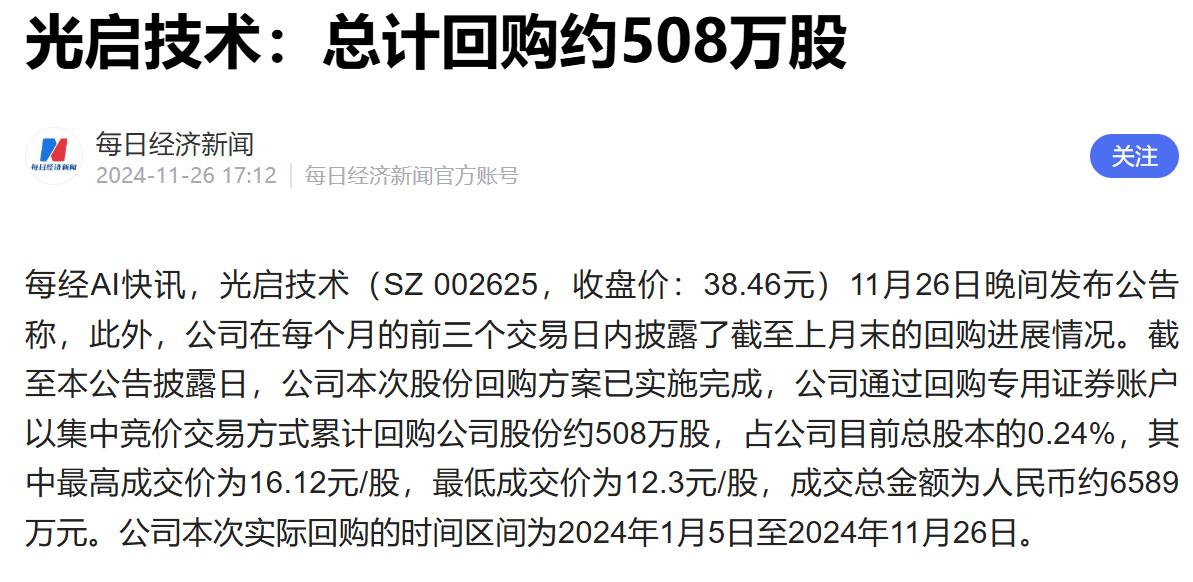 总计回购508万股,总金额6589万元,回购均价12.97元/股,
