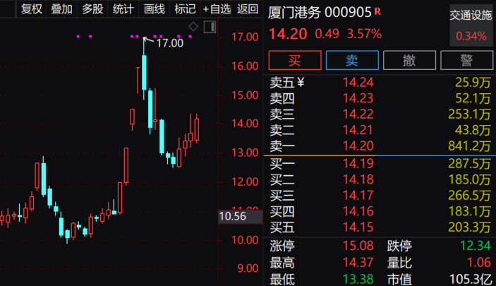 厦门港务:漳台组合港核心运营主体,拥有密集的对台集装箱航线资源,区位优势稀缺,直接受益于平潭封关后对台贸易往来的持续增长。$厦门港务(SZ000905)$