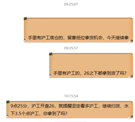 沪工开盘26,但沪工是坚定看多的,打折的筹码没有理由不要,何况自己还有底仓可以T+0呢?于是在9点25分,在后院就提醒扫货,也就是直接使用“反弹买入”条件单扫货,设置26,反弹3分自动买入,卖五。