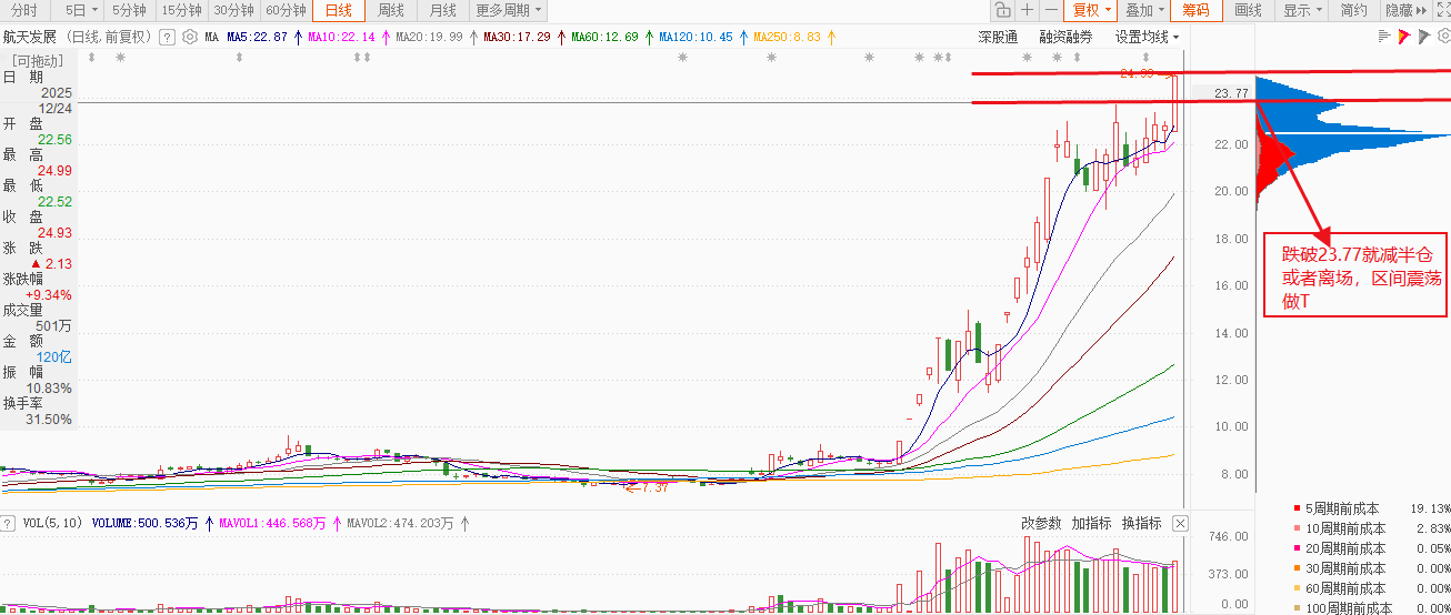1:航天发展今日大概率走出震荡修复行情,短期反弹动能充足,但需警惕高换手带来的分歧风险