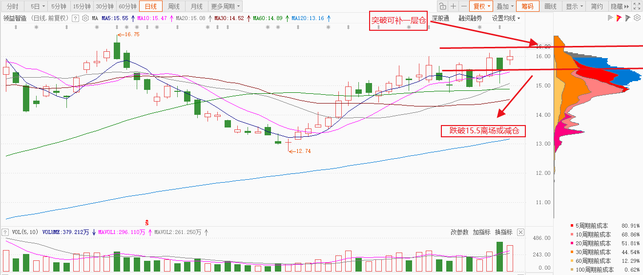 3:万一直接跌到15.5元以下,别犹豫,赶紧减到轻仓,别让赚的钱又吐回去!