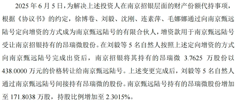 此时昂瑞微已进入IPO审核流程,在屹唐股份公开披露代持情况之前,南京招银已着手解决昂瑞微的代持清理。
