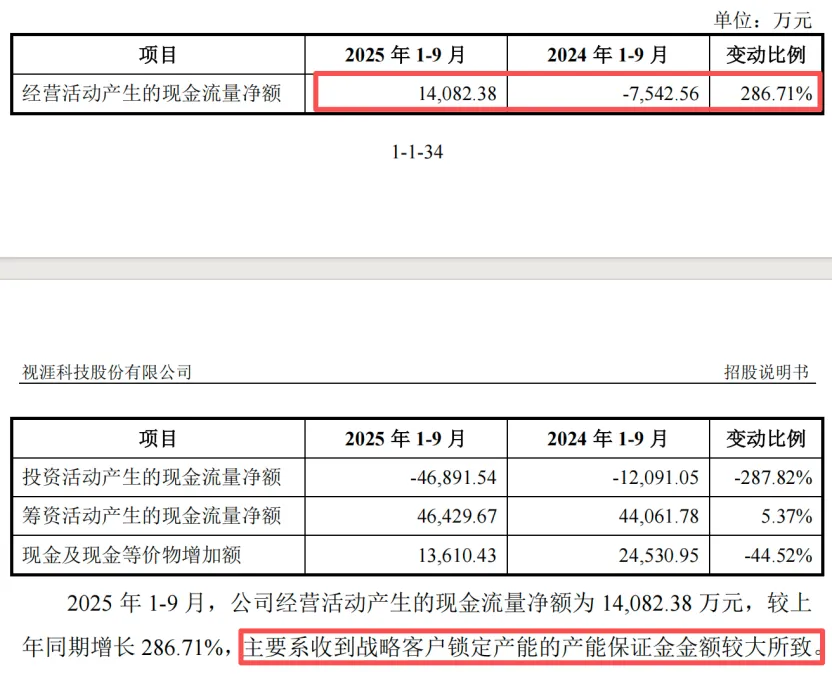 今年1-9月,公司经营活动产生的现金流量净额为1.41亿元,较上年同期增长286.71%,主要原因是收到战略客户锁定产能的产能保证金金额较大。这也从侧面说明业务前景乐观,产品供不应求,在产业链当中具有较强话语权。