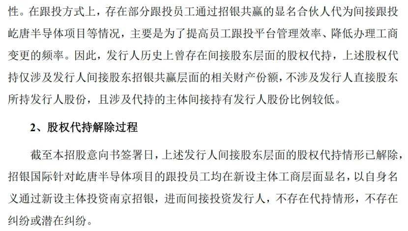 从2021年6月屹唐股份IPO受理,到2025年3月注册生效,近4年时间里,南京招银都没有如实披露相关情况,甚至出具承诺函明确表示各层级不存在代持。直到今年6月启动发行前,才在屹唐股份招股意向书中首次披露相关情况,并表示已通过新设主体解决代持问题。