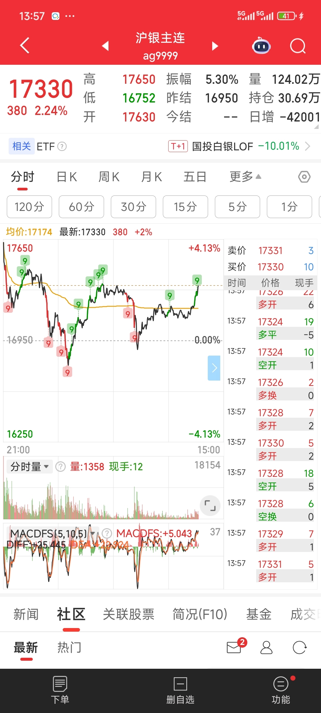 $国投白银LOF(SZ161226)$ 铂金钯金都拉上去了,沪银也启动了。两点半一定红