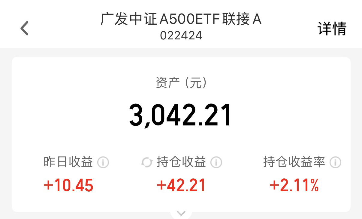 买1000$广发中证A500ETF联接A(OTCFUND|022424)$,理由是:这只具备国际影响力的核心宽基指数,在编制时增加了ESG负面剔除、成分股均互联互通等条件,更利于境外投资者入市,增强国际化基因。成份股兼具核心资产和新兴生产力的双重代表性,既有2000亿以上的大市值公司,又对200亿以下的优质小公司有所覆盖,可以说,能把握市场的任何风格,特别提升了对新兴行业如科技、新能源、国防、医疗等领域的投资比例,形成一个更为全面且多元化的宽基,正符合当前中国经济转型升级的大趋势,也符合十五五规划的发展目标,拉长周期,近一年均跑赢中证500和沪深300,作为新时代宽基来买挺合适。