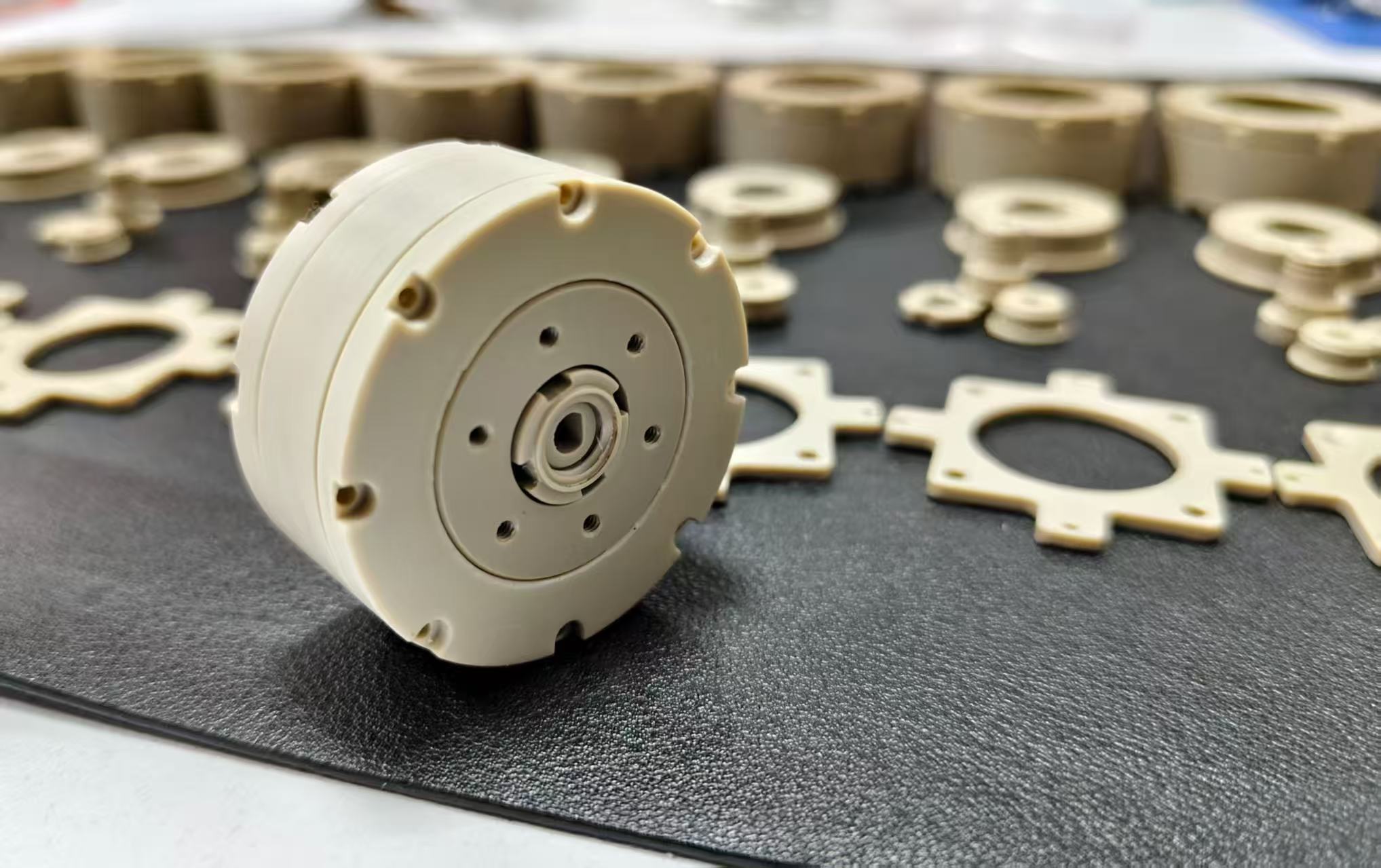 也正是在这一背景下,轻镁智塑与灵心巧手选择了一条不同的技术路径——以高性能 PEEK 工程塑料,重构摆针减速器的主体结构。这不是一次简单的材料替换,而是把一种具备高韧性与吸能特性的工程材料,放进了机器人最核心、最吃力的结构位置。