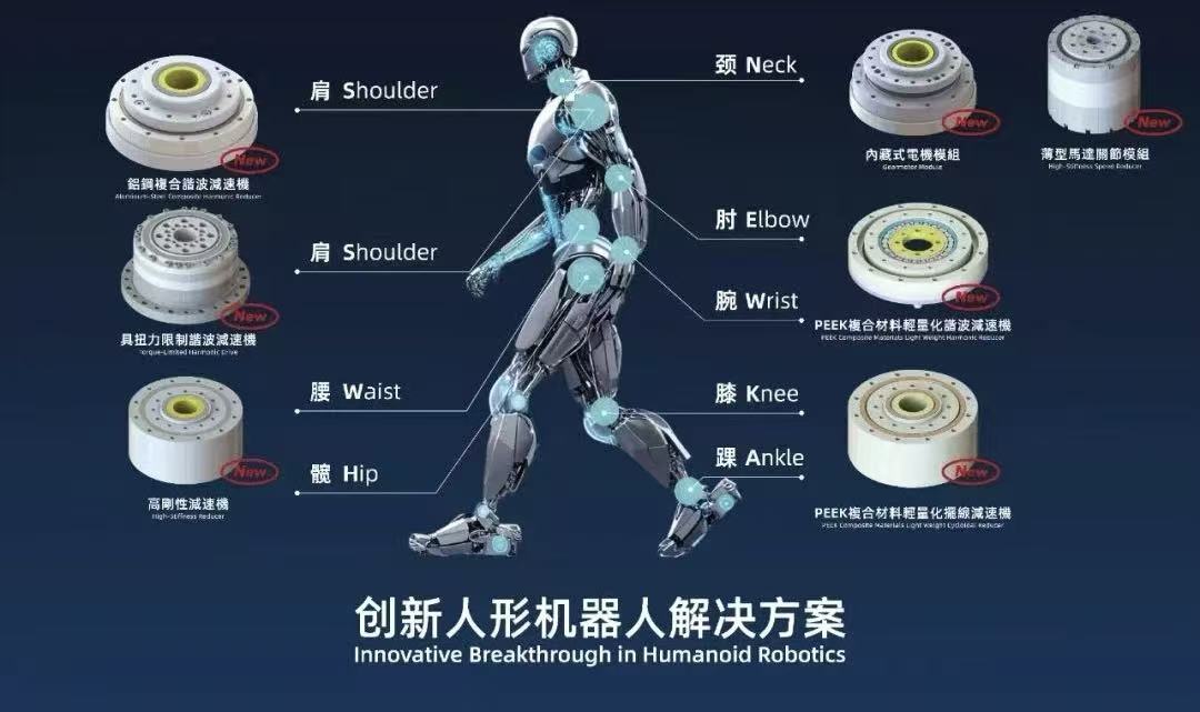 如果说技术突破本身还不足以让市场真正兴奋,那么真正让人坐直身体的,是它背后的用量与扩展逻辑。一台人形机器人通常拥有二三十个关节,而真正承受冲击、决定运动质量和可靠性的,是髋、膝、踝、肩、肘等关键节点,这恰恰是摆针(摆线)式减速器最适合发挥价值的部位。这意味着,该产品并非“一台机器人用一个”的孤立零件,而是单机内可多点重复配置的核心部件。
