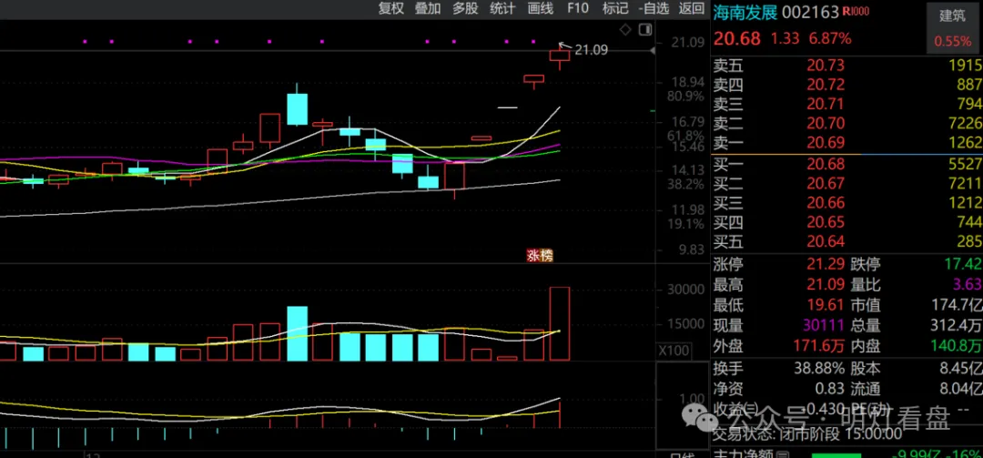 海南板块,今天领跌。海南自贸的安通控股倒是4连板,$海南发展(SZ002163)$努力一天,都无法去封涨停。两家领涨,都不是海南板块,但都属于海南自贸。海南发展已经是明牌的龙头,明天是补跌,还是弱转强,将会决定海南板块的强弱。