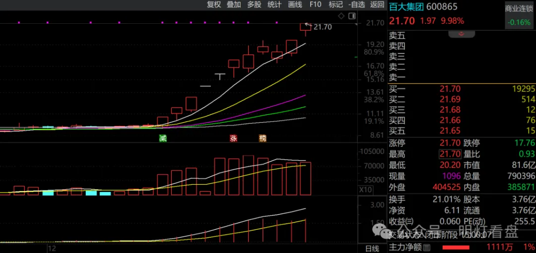 消费则深受打击,主要的原因,是安记食品炸板,东百集团跳水。连百大集团也从涨停回落。尾盘安记食品两波拉升,都无法回封,只有$百大集团(SH600865)$在尾盘前放量回封,鹭燕医药从底部回升。