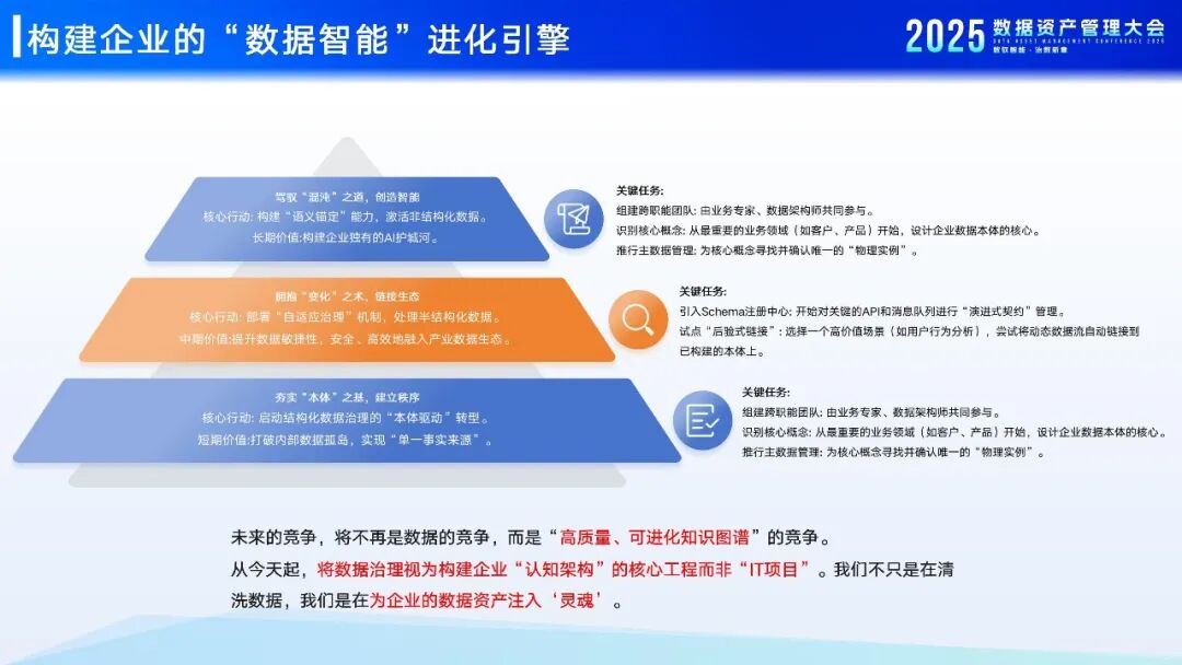 日前,在中国通信标准化协会主办的2025数据资产管理大会数据资产分论坛上,普元信息技术领军人焦烈焱通过《从"治理秩序"到"知识工程":基于知识建模的全要素数据资产构建之道》的主题演讲,结合数据治理从1.0向2.0演进的底层逻辑,详细剖析了这一趋势。
