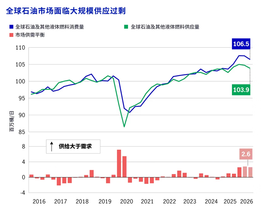 由于大量的供应过剩导致价格承压,全球石油市场在2026年伊始面临挑战。然而,我们预计,随着全球增长反弹,非OPEC+产出放缓以及OPEC+闲置产能收窄,供应将在下半年逐渐收紧。