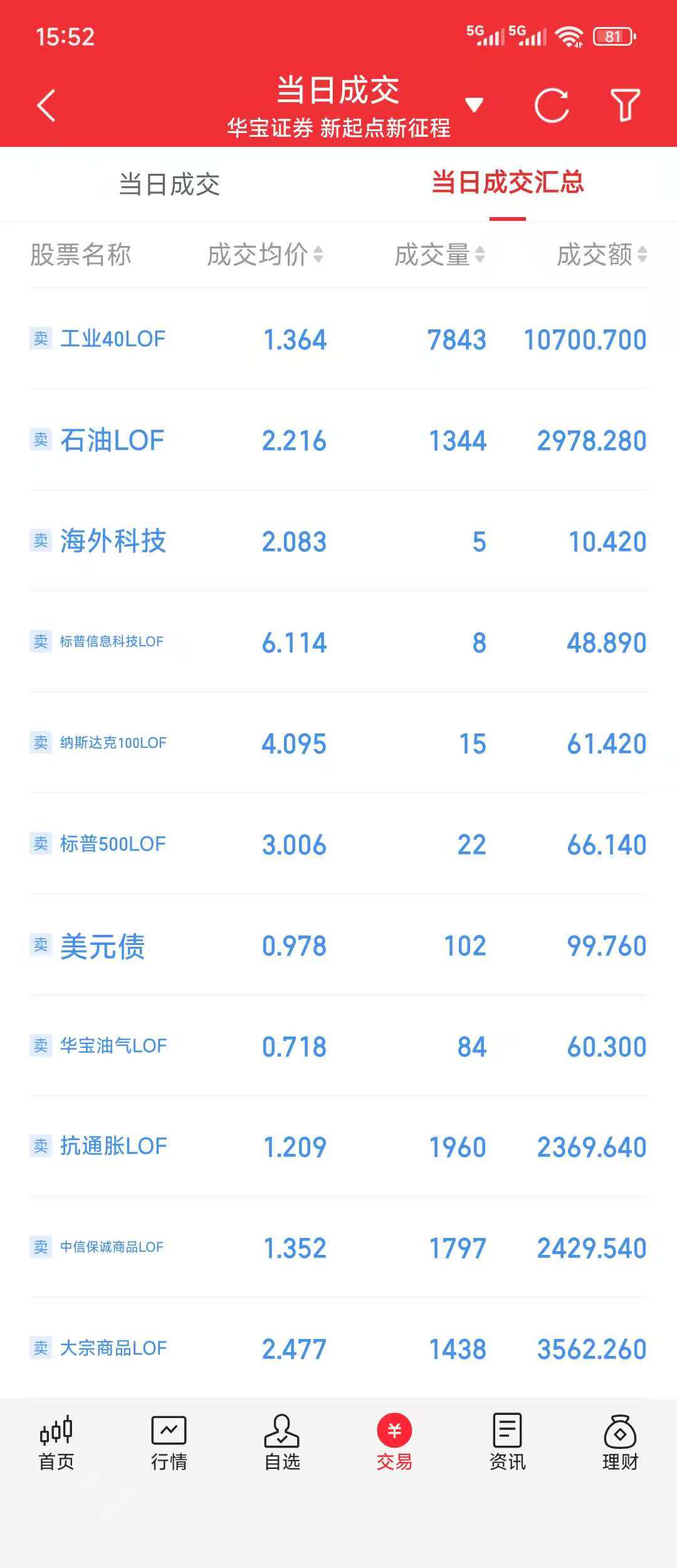 中信保诚商品LOF(165513)跌停,收盘溢价2%+,我1.352卖出去了1797份,算是卖了好价钱,暂停申购;