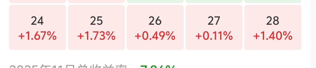 11月21日,我根据自身账户盈亏表现,结合强势股与优质个股的走势特征,判断市场调整已近尾声。如今回头看,这一判断精准踩中了市场节奏——自11月24日起,我的账户每日收益便持续飘红,截至目前12月总收益率已达9.44%,全年新高的目标仅一步之遥。