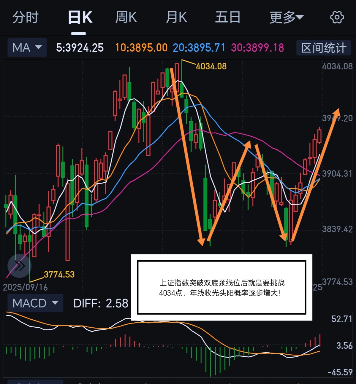 大盘居然走出七连阳,实际上从纯技术上分析,大盘突破双底颈线位后3936点之后,应该翻箱体向上涨121点才遇到强阻力,由此看来距离年线收官还有四个交易日,大盘能否创前高4034点呢?按照翻箱体向上3936+121=4057点,因此也有可能年线收官以光头阳线完美收官。当然连续上涨之后肯定压力越来越大,所以操作上还是要留一半清醒留一半醉,只能保持六成或者七成仓位即可,一旦发觉急跌跳水第一时间要大幅度降低仓位,然后等待止跌时再把筹码捡回来。三大指数今日集体小幅上扬,沪指日线七连阳。截止收盘,沪指涨0.47%,收报3959.62点;深证成指涨0.33%,收报13531.41点;创业板指涨0.30%,收报3239.34点。沪深两市成交额达到19245亿,较昨日放量443亿。至于浙江永强股吧里黑粉捣乱猖獗,只不过浙江永强收盘之后公告注销一个子公司,子公司亏损注销是减负这是利好。