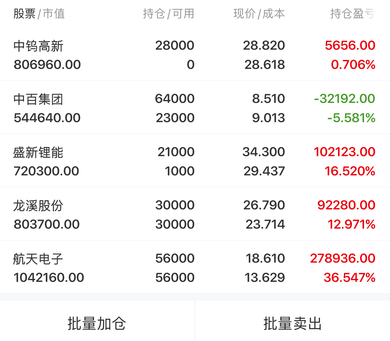 个人持仓:$航天电子(SH600879)$$龙溪股份(SH600592)$$中百集团(SZ000759)$盛新锂能,中钨高新#收盘点评#