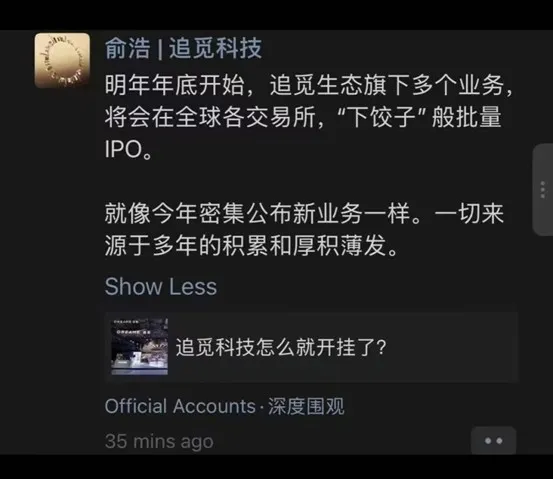 俞浩曾在朋友圈透露,2026年底起将推动旗下多个业务在全球各交易所批量IPO。但分拆上市的难度远超想象——追觅的业务横跨家电、汽车、机器人、航天等多个领域,每个板块的估值逻辑完全不同,单独IPO需要分别满足监管要求,周期长、不确定性高。