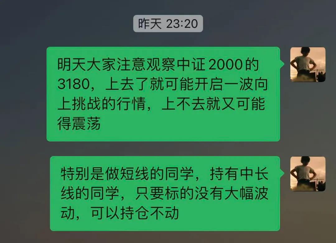 今天指数继续上涨,深证成指和创业板指经历震荡后也开启了一波向上的行情,盘面上涨幅不大,但是个股的表现明显好于指数,特别是小盘股。昨天晚上在专属群内提到了今天中证2000的指标,如果能够站上3180,那么今天就有行情。但是今天的中证2000并不是一路向上,第一次突破后马上出现了回落,后续二次冲击才开启了一波行情。今天情绪上来以后,成交量并没有明显提升,所以短期内并不具备继续冲击新高的条件,对于明天的行情,大概会是冲高回落,短期有收益更适合落袋为安