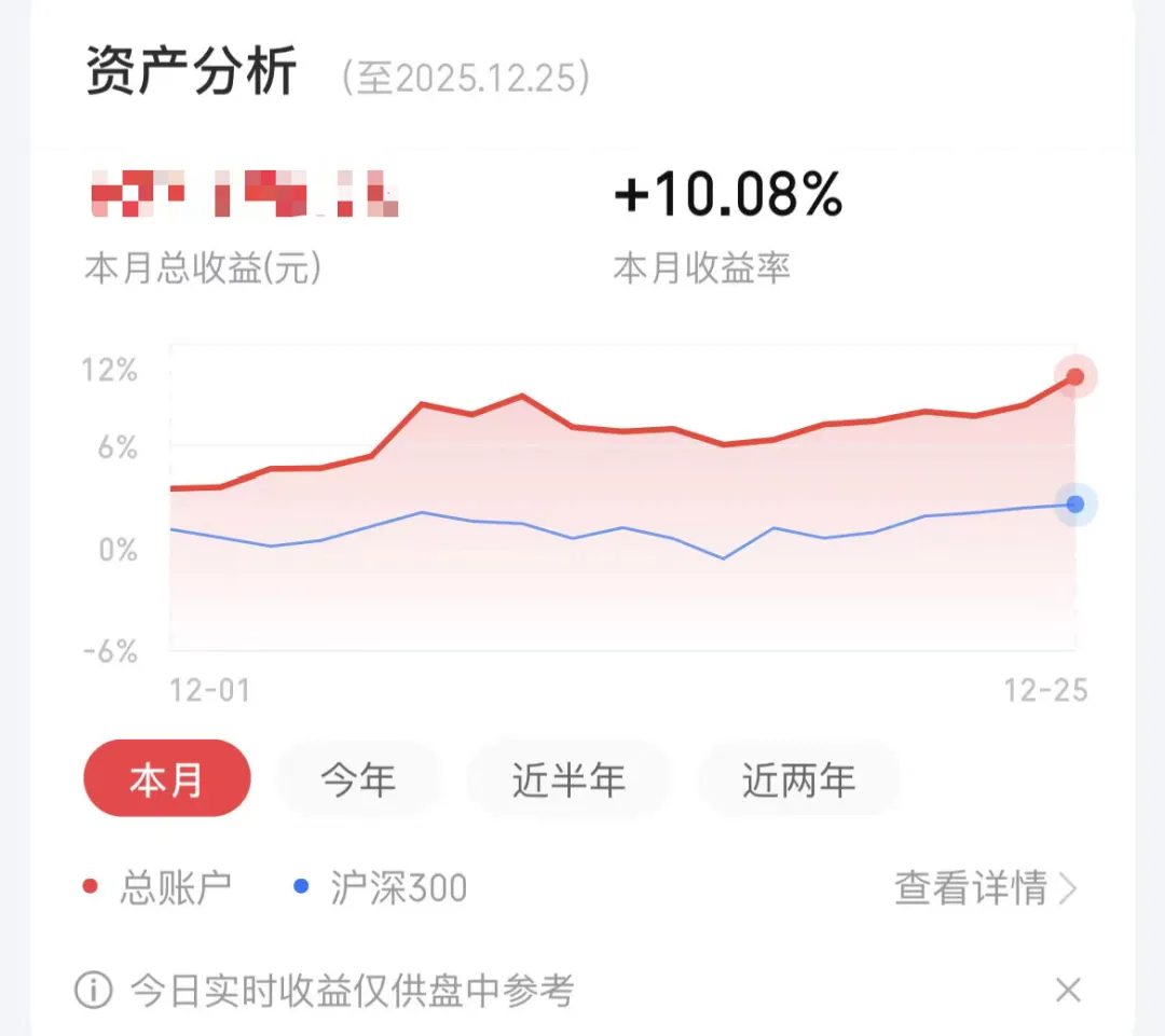 依靠今天的行情,本月的收益率已经突破10%