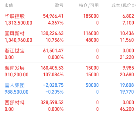 海南发展002163:海南自贸。海发之前 4 连板,今天迎来断板转折。全天成交量极速放大,盘面呈现放量震荡态势,资J分歧加剧,短线风险已然抬升。但是考虑到可能还会维持高位震荡的状态,所以仓位没走完,留了部分。反正整体仓位就不大,再继续观察观察。