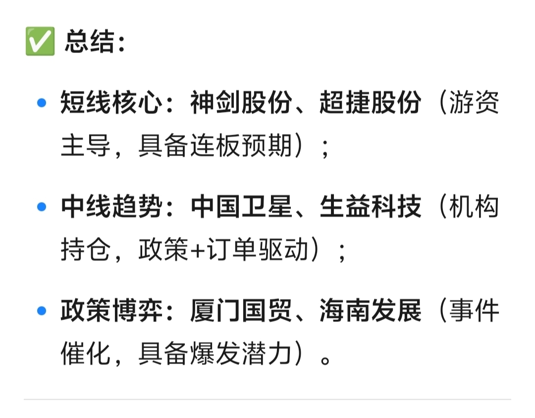【免责声明】本文内容转载自互联网或出版刊物,如有侵权请联系我们删除。文中一切内容(包括文字、图片、链接,视频等),仅为分享、交流、探讨,不构成任何实际操作建议,风险自担,盈亏自负!股市有风险,入市需谨慎!收集不易,请多多分享点赞支持,谢谢!$超捷股份(SZ301005)$ $广联航空(SZ300900)$ $神剑股份(SZ002361)$ #复盘记录# #强势机会# #炒股日记#