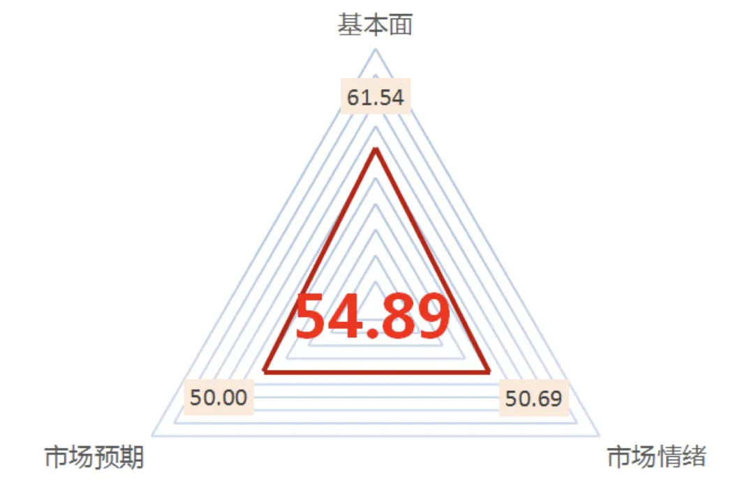 沪深300指数的中泰资管风险系统评分为54.89,较上月52.77略有回升。市场整体风险偏好维持温和修复态势,多维度指标分化持续缓和。