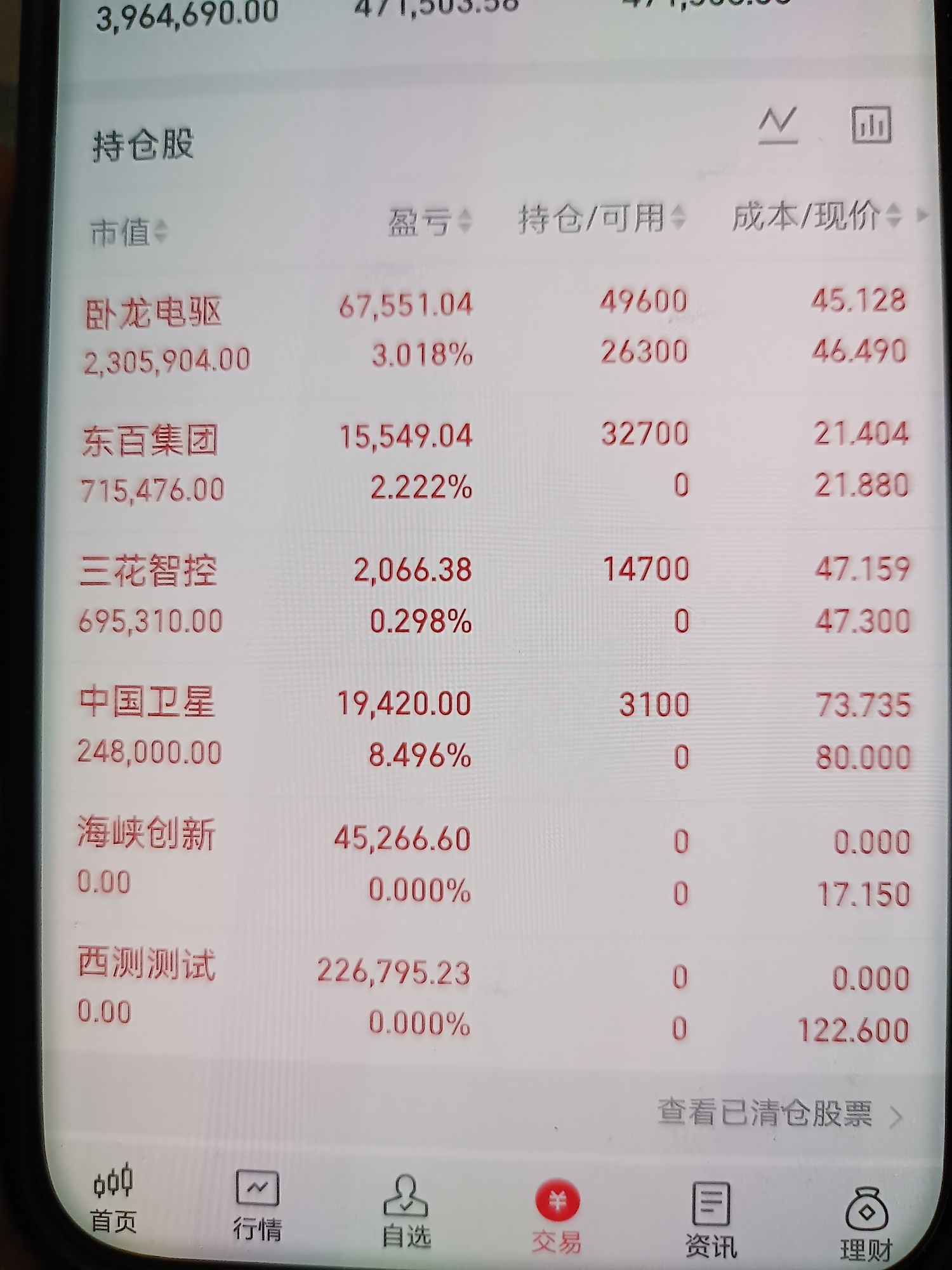 兄弟们晚上好!晒下今天的战绩——新入的东百、三花、中国卫星全飘红,加仓的卧龙电驱继续吃肉,西测、海峡也落袋为安了!$东百集团(SH600693)$ $三花智控(SZ002050)$ $中国卫星(SH600118)$ ![发财 [发财]](http://gbfek.dfcfw.com/face/emot_default_28x28/emot90.png)