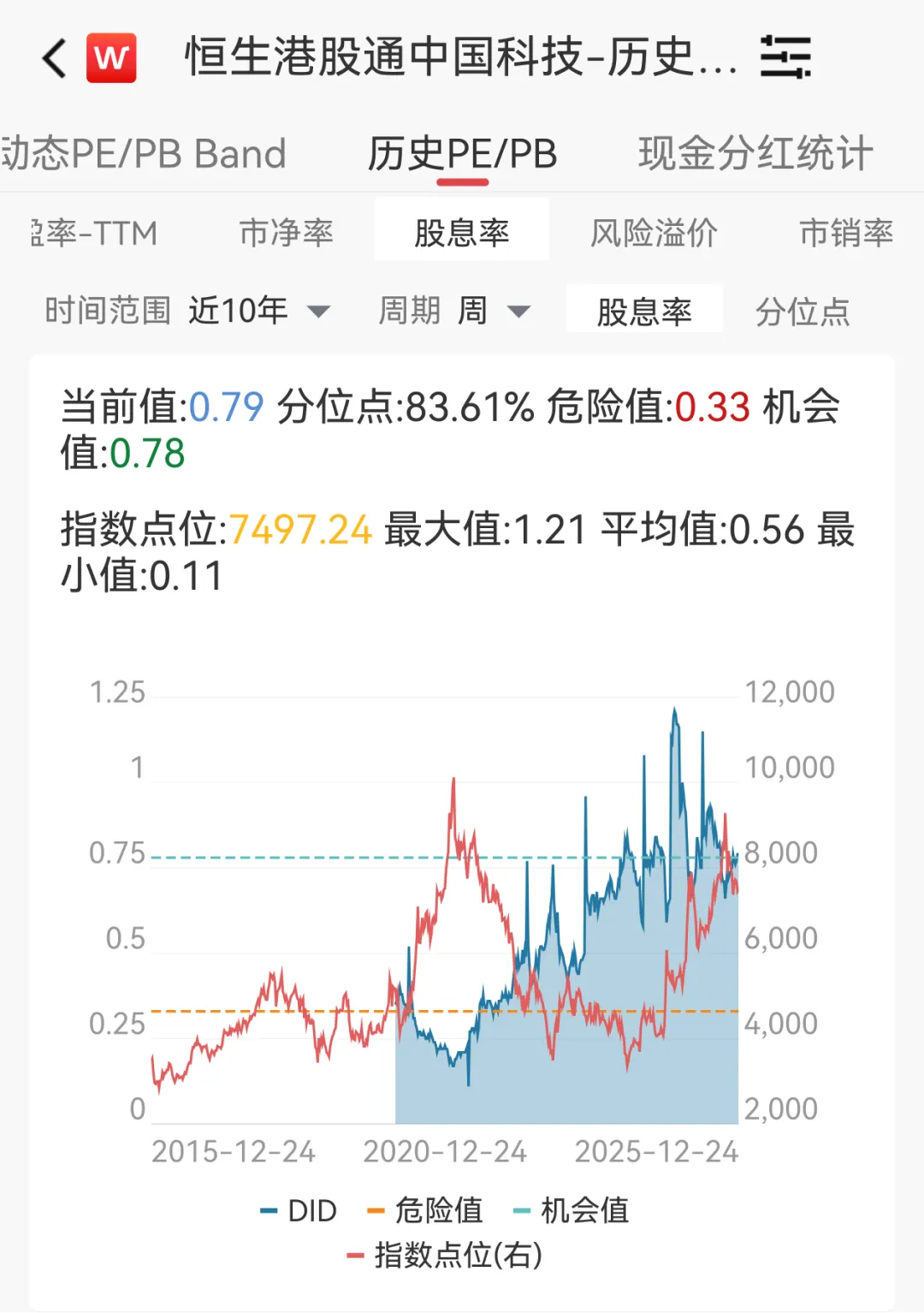 看股息率当前为0.79%,处于估值分位点83.61%的位置。WIND显示股息率危险值在0.33%,机会值在0.78%,所以,从股息率来看,现在在机会值以内。
