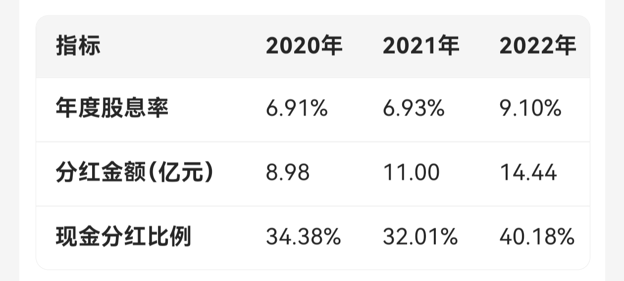 分析:股息率连续5年超5%(2024年4.97%),显著高于10年期国债收益率(当前约2.5%),股息率溢价达2.47%,提供防御性收益。
