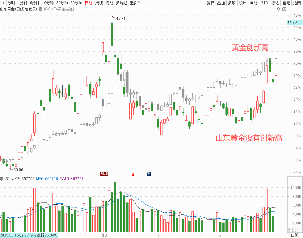 直接锚定金价:价格表现与实物黄金几乎同步,剔除了企业经营和成本波动的干扰。