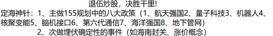 记得这是我10月28日的日记。那天把国家“十五五”政策好好研究了一番,国家的未来方向,其实就是股市的未来方向。股市无小事,事事连政治。当初的“航天强国”里的国机精工,正是因为坚定的看到了航天强国的必要性,才能一直拿住。