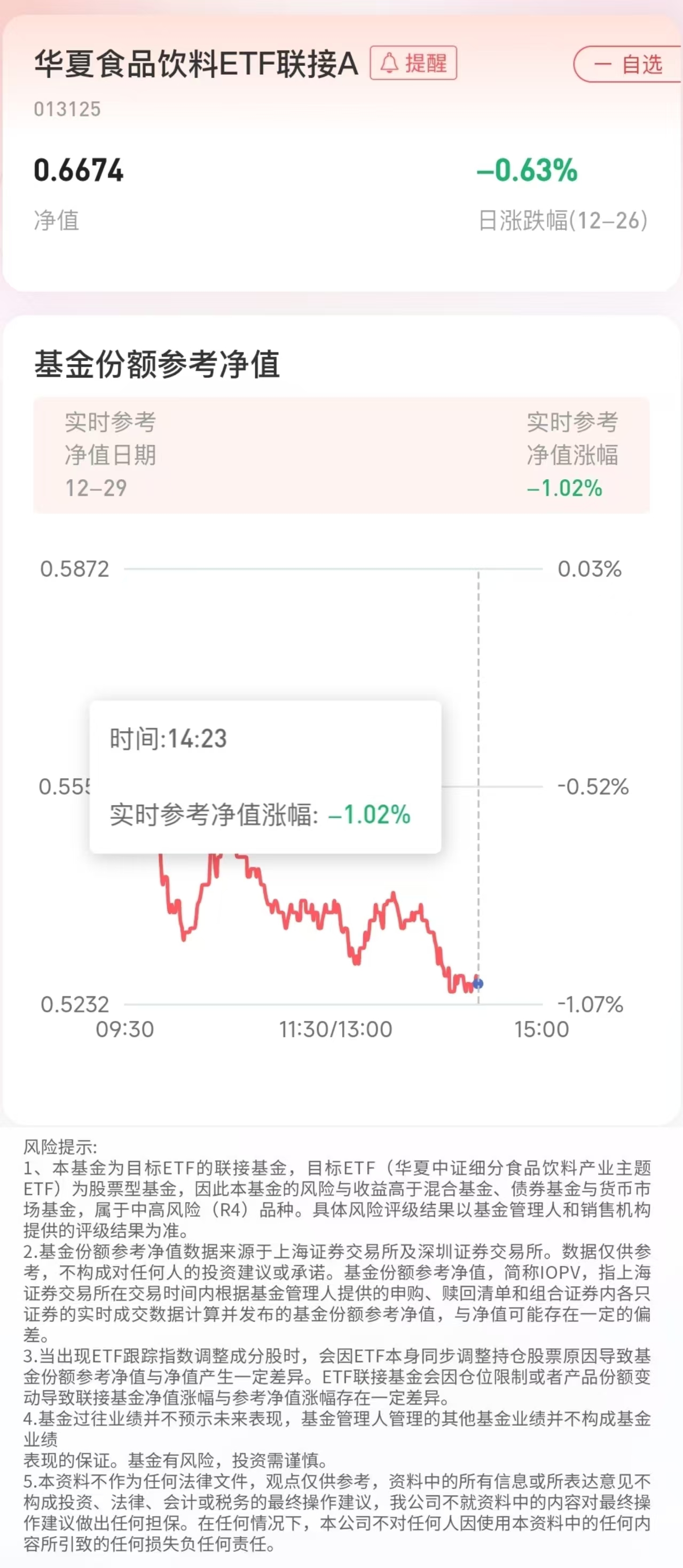 截止至2025年12月29日14:23,本基金跟踪目标基金的实时参考净值涨幅为-1.02%,其跟踪的指数最新PB(市净率)为4.48,处于较低区间。