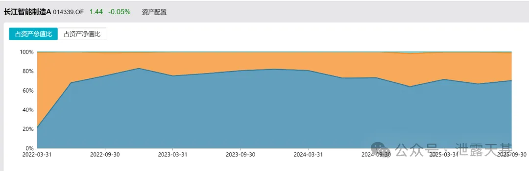 以他管理时间最长的长江智能制造混合(014339)举例,自2021年股市高点成立至今,产品的年化收益率为9.54%。从各个季报时点的持仓来看,不满仓是其呈现出的仓位管理特色,这意味着当出现合适的机会,可以更加从容地进行仓位的调整。