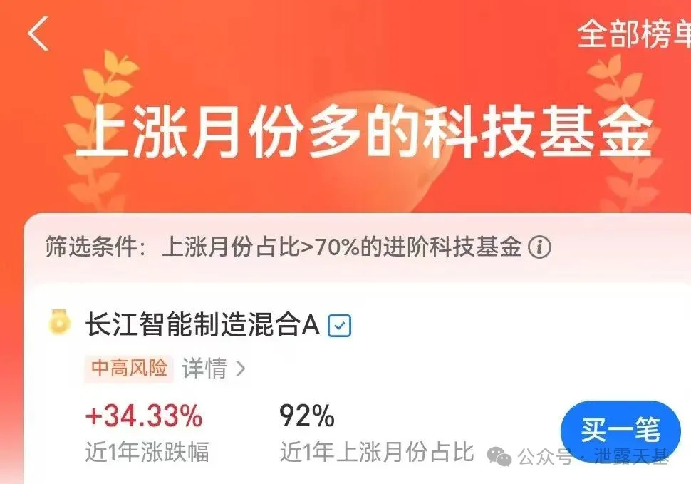 我们在寻找这类基金经理的过程中,发现ANT基金正好有类似的榜单,叫做“上涨月份最多的科技基金”,榜单统计的方法是对核心持仓为科技的基金统计,并按照上涨月份的多少进行排序。