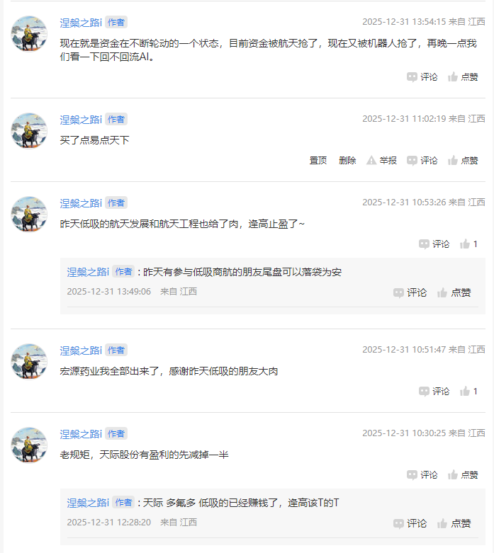 最后跟兄弟们说几句心里话:2025年无论盈亏,都已画上句号!要是还有兄弟处于亏损状态,别灰心,2026年咱们并肩再战,定能打个翻身仗!感谢兄弟们一路以来的陪伴、支持与信任,我始终自认是个负责任的领路人——市场没有常胜将军,错了就认,改了就赢!当前咱们的连胜势头依旧强劲,这里也跟大家交个底:别看我点评的票多,实则咱们核心持仓就1-2只,集中兵力才能精准打击!