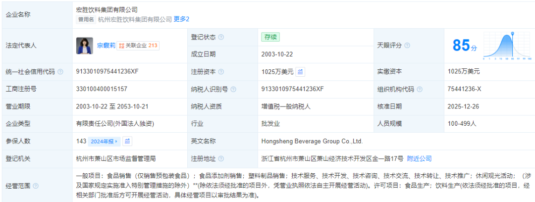 一个月后,11月5日,郑群娣接任法定代表人兼经理,她是宗馥莉的长期亲信,同时掌管浙江娃哈哈数字科技、天猫“娃哈哈旗舰店”运营主体杭州恒益电商等关键平台。