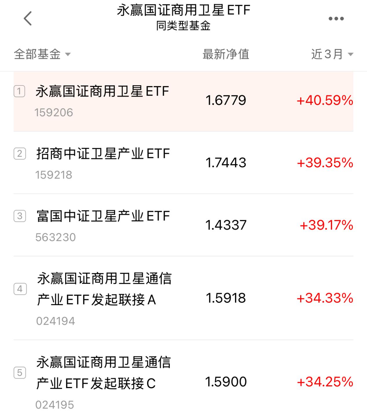 其聚焦的场内全市场首只且规模最大的$卫星ETF(SZ159206)$表现更为抢眼,截止午间收盘上涨2.31%,盘中价格触及1.733的历史新高,日K线持续收阳,中心不断上移,近3个月更是以40.59%的涨幅位居同类第一,用实打实的表现印证了卫星赛道的投资价值。