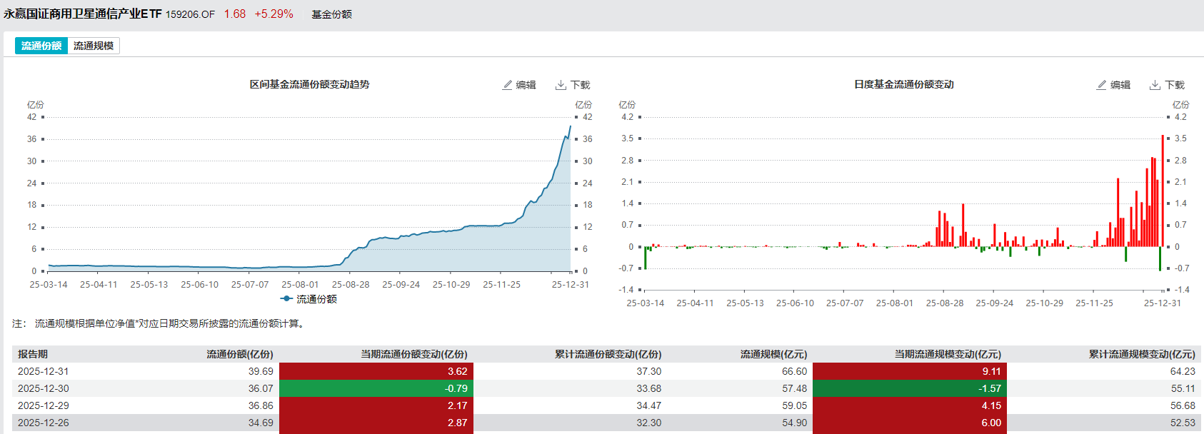 永赢国证商用卫星通信产业ETF发起联接C(A:024194;C:024195)之所以能同步走强,核心在于其精准的赛道布局。该基金深度聚焦永赢卫星ETF(159206),而这只ETF直接跟踪国证商用卫星通信产业指数,全面覆盖卫星制造、通信服务到终端应用的全产业链,能够完整捕捉行业发展带来的红利,是场内布局商业航天赛道的最佳抓手。从资金和规模来看,卫星ETF最新规模达到66.60亿元,创下成立以来的新高,最新资金净流入6.01亿元。拉长时间维度,近8个交易日内有7个交易日实现资金净流入,合计吸金23.71亿元,日均净流入2.96亿元,资金的持续加仓充分体现了市场对该赛道长期发展的信心。