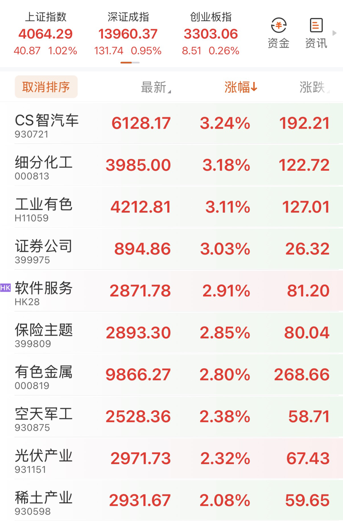 板块上,有色、化工、证券、保险、芯片、光伏涨幅居前,算力、通信设备、银行微微翻绿。