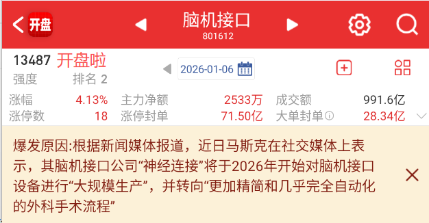 比如1.5元旦后第1个交易日的脑机接口(海格通信)
