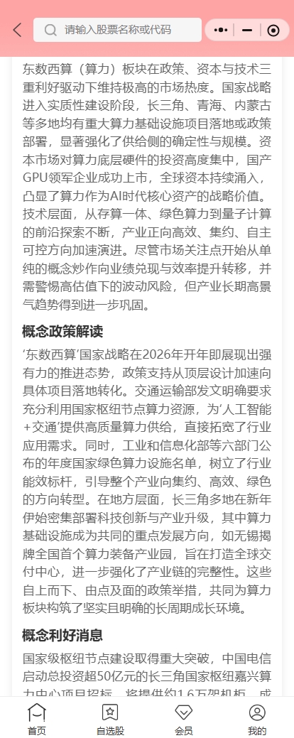 在希财舆情宝看了板块分析,给出了96分的强烈正面分析:板块在政策、资本与技术三重利好驱动下维持极高的市场热度。机构观点普遍认为,2026年AI发展将从通用模型转向专业化应用,驱动算力体系在布局、架构和主权层面进行全局性重构,推理算力需求占比将显著提升,‘通智超量‘异构融合成为明确趋势。