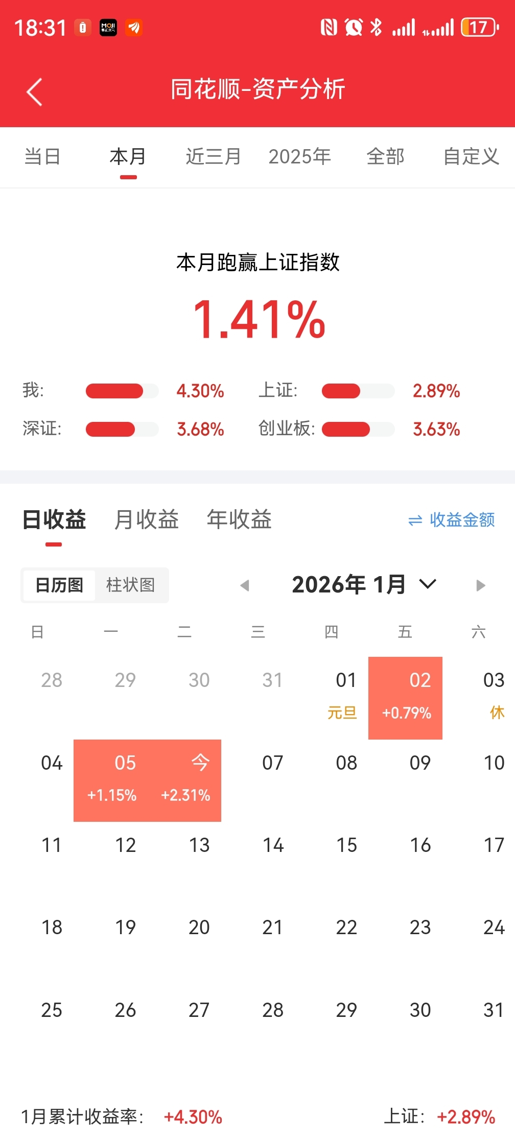 小账户:月+4.3%,组合持仓,得益于互相抗净值。如图