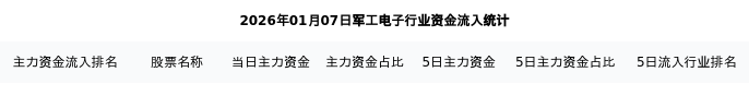 从主力资金流向来看,军工电子行业6日主力资金流入376.05亿,在所有申万二级行业中排名:126/131。