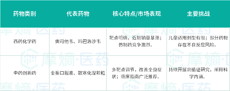 当前我国流感活动处于高流行水平,呼吸道感染疾病高发。在抗病毒西药需求激增的背景下,中成药凭借“多靶点-多途径”的整体调节优势,成为临床防治的关键力量。摩熵医药数据显示,2025年上半年呼吸系统中成药在全终端医院市场销售额超330亿元,其中13款独家品种占据TOP20榜单主导地位。$康缘药业(SH600557)$作为创新中药领军企业,其旗下金振口服液、散寒化湿颗粒等产品,不仅积累了扎实的循证证据,更在近期政策利好与市场需求的“风口”下,展现出巨大的市场潜力。