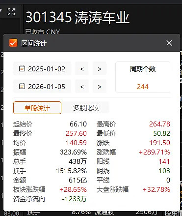 这只基金长期重仓的涛涛车业,2025年至今涨幅接近3倍,是一只大牛股。