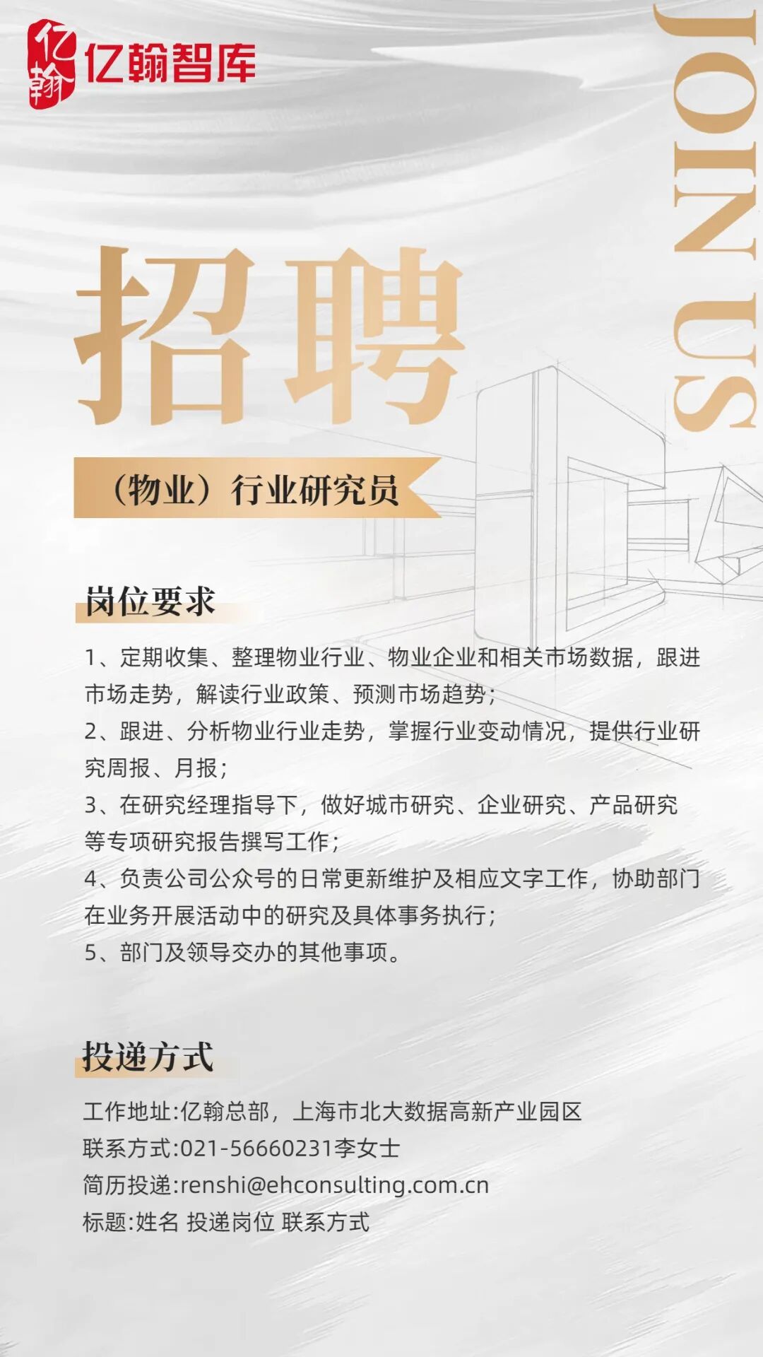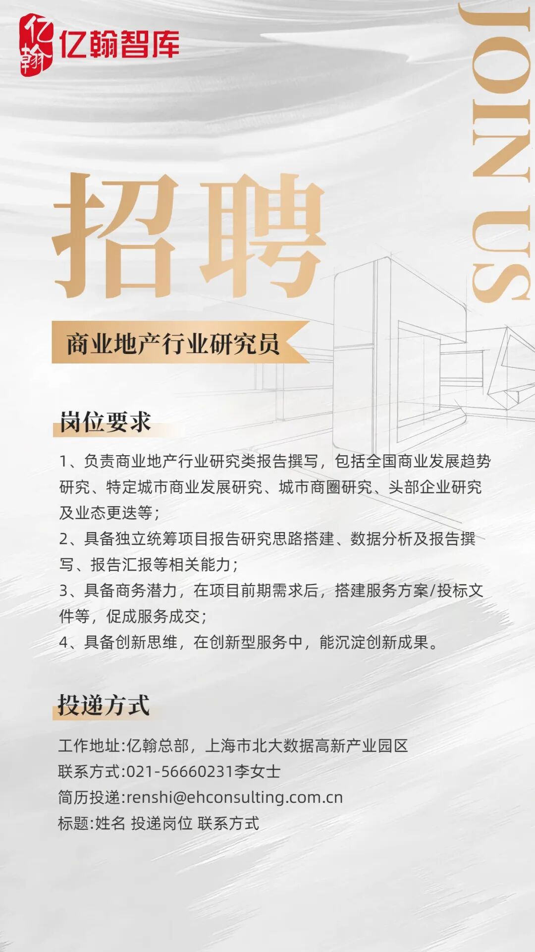 招聘岗位:商业地产行业研究员
