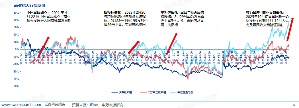 第三次加速就是当前阶段。星座新一轮、更大规模的招投标正陆续落地,卫星及火箭技术持续突破,算力星座等新应用场景不断涌现。随着星网和垣信在2025年完成小批量组网,国内外应用场景正变得越来越明确。卫星板块将逐渐从主题催化过渡到产业投资阶段。