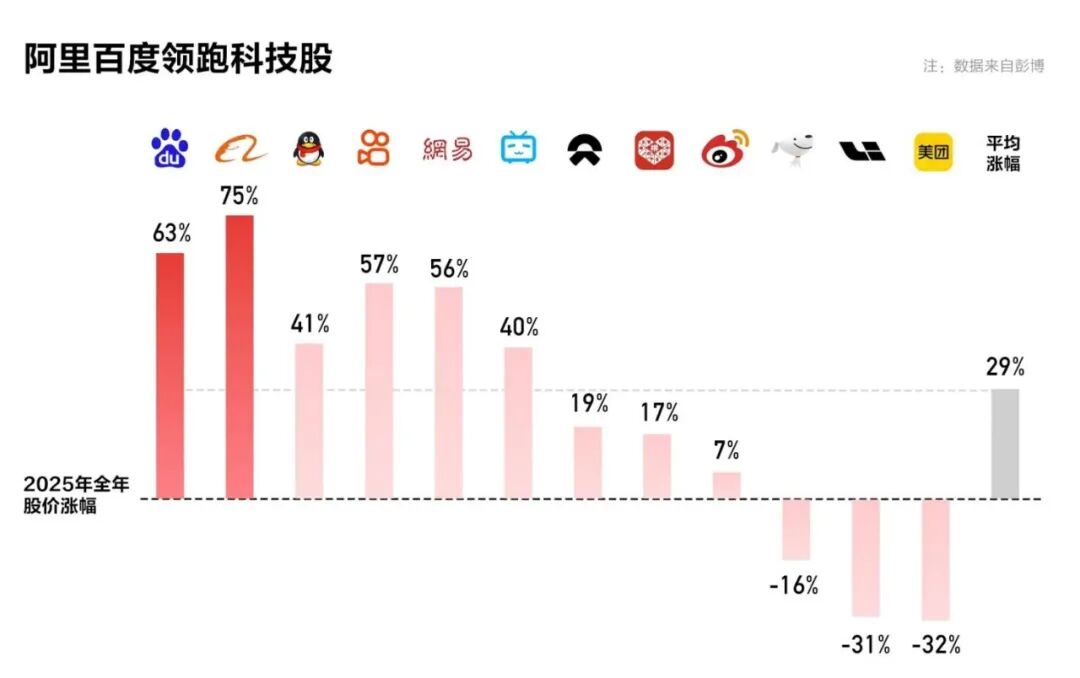 重磅消息提振之下,百度美股一度上涨15%,百度港股也在最近的两个交易日,涨幅分别高达10%上下。回看2025年中国科技互联网的企业股价涨幅,百度阿里领跑中概股。
